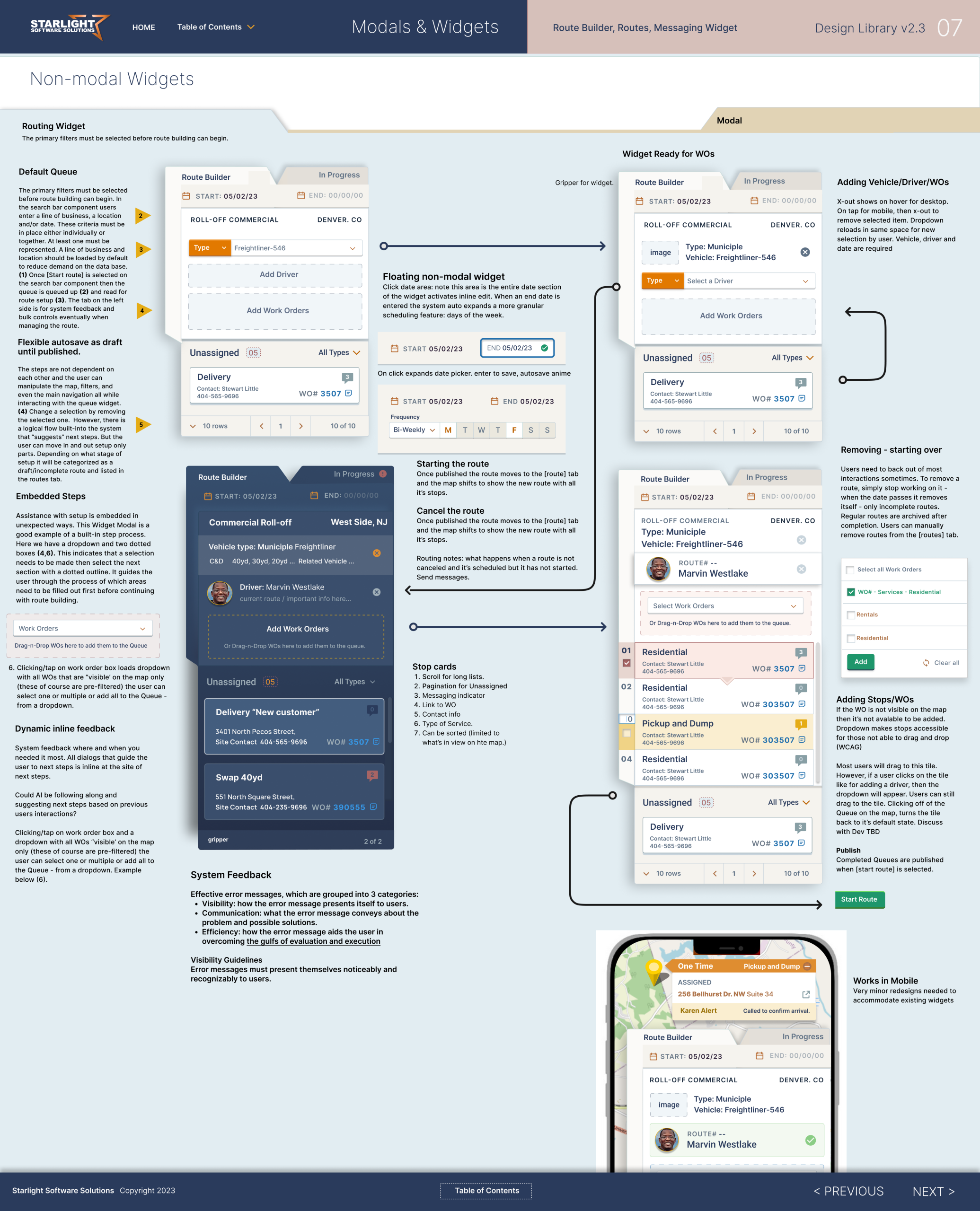 Project SummaryCloud-based waste management and recycling software; Omni-channel Routing, Dispatch and Customer Management. Includes the full suite of SaaS products integrated to serve all aspects of a residential waste management service: billing, inventory, accounting. None of this existed when I started. I spent two weeks on site in Denver to finalize the project. | SolutionDevelop a design system they could use to inform future iterations of the project. Each client has different needs for a design system. Companies unfamiliar with design standards and outsourcing design changes need libraries with more instruction than internal teams managing their own and evangelizing usability. That said, there is a lot of annotation here. |