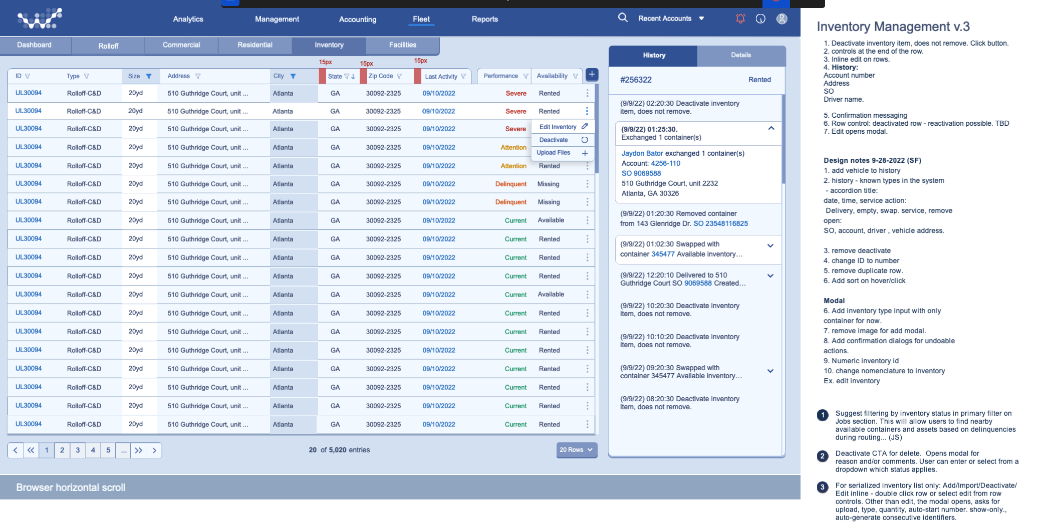 | My holistic research approach, based on Lean UX methodologies, enabled the creation of a flexible, accessible, and user-friendly interface that supports complex routing, tracking, and productivity oversight tasks effortlessly. Stakeholder Interviews: Early discussions with the CTO and key stakeholders at Waste Applications Inc. helped me align on business goals, product vision, key features, and branding requirements, ensuring the UI met both user and business needs. User Interviews and Contextual Inquiry: We interviewed a variety of end-users such as dispatchers, asset managers, vehicle operators, and revenue analysts. Observing their workflows and challenges firsthand allowed deeper understanding of pain points and real-world usage scenarios.